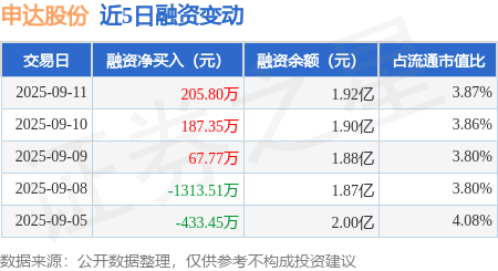 申达股份:9月11日融资净买入205.8万元,连续3日累计净买入460.91万元