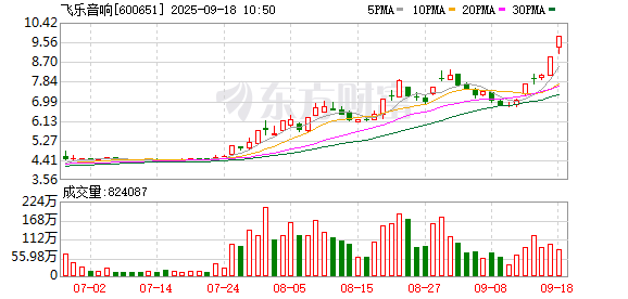 飞乐音响9.96%涨停,总市值191.04亿元