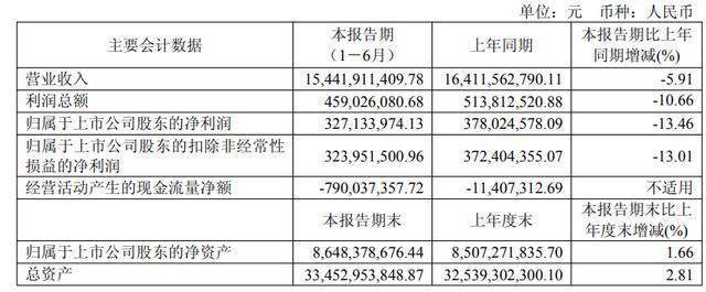 财务表现 - 上半年营业收入154.42亿元 同比下降5.91% [2] - 归母净利润3.27亿元 同比下降13.46% [2] - 扣非归母净利润3.24亿元 同比下降13.01% [2] - 毛利率7.86% 同比上升0.24个百分点 [3] - 净利率2.57% 同比下降0.17个百分点 [3] - 经营活动现金流量净额-7.90亿元 去年同期为-0.11亿元 [2] 费用控制 - 期间费用7.30亿元 同比减少7331.67万元 [3] - 期间费用率4.73% 同比下降0.17个百分点 [3] - 销售费用同比下降13.78% [3] - 管理费用同比下降9.14% [3] - 研发费用同比下降8.41% [3] - 财务费用同比下降13.22% [3] 管理层变动 - 方涛当选第十一届董事会董事长 孙鸿伟退任 [4] - 方涛1982年出生 硕士研究生学历 现任太极实业党委书记、董事长 [4] - 孙鸿伟1966年生 现任海太半导体等多家子公司董事长职务 [5] 历史财务数据 - 2024年全年营业收入351.72亿元 同比下降10.68% [6] - 2024年归母净利润6.57亿元 同比下降9.98% [6] - 2024年扣非归母净利润5.35亿元 同比下降24.94% [6] 公司基本信息 - 公司位于重庆市渝北区 成立于1979年11月26日 [6] - 1997年11月18日上市 主营业务为中成药、西药、保健品加工销售及医疗器械销售 [6]