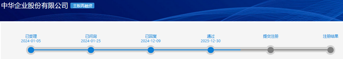 中华企业:向特定对象发行A股股票申请获得上海证券交易所审核通过