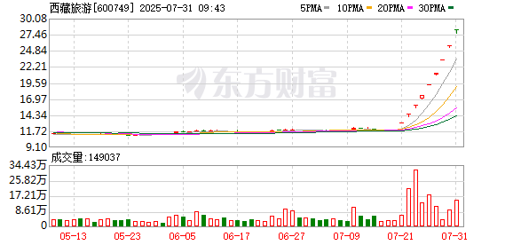 西藏旅游一字涨停,录得9连板,现报28.20元。