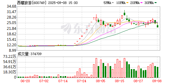 股价表现 - 8月27日盘中上涨7.59%至25.65元/股 成交额7.2亿元 换手率12.98% 总市值58.22亿元 [1] 经营规模 - 年游客接待量超过200万人次 运营雅鲁藏布大峡谷等多家A级景区 [1] - 业务涵盖旅游景区运营 旅游服务和旅游商业运营 [1] 股东结构 - 截至3月31日股东户数2.66万户 人均流通股8532股 [2] 财务表现 - 2025年第一季度营业收入2553.13万元 同比增长11.52% [2] - 归属净利润-912.24万元 亏损同比收窄53.93% [2]