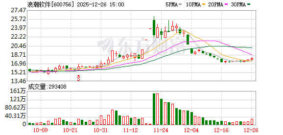 12月26日,浪潮软件盘中上涨2.16%,截至13:51,报18.00元/股,成交3.34亿元,换手率5.79%,总市值 62.93亿元。 浪潮软件所属申万行业为:计算机-IT服务Ⅱ-IT服务Ⅲ。所属概念板块包括:AIAgent(智能体)、ERP 概念、国资云、数据要素、智慧政务等。 截至9月30日,浪潮软件股东户数6.65万,较上期减少6.32%;人均流通股4871股,较上期增加6.74%。 2025年1月-9月,浪潮软件实现营业收入7.27亿元,同比减少29.61%;归母净利润-2.11亿元,同比减少 122.78%。 分红方面,浪潮软件A股上市后累计派现2.34亿元。近三年,累计派现2106.64万元。 机构持仓方面,截止2025年9月30日,浪潮软件十大流通股东中,香港中央结算有限公司位居第三大流 通股东,持股235.14万股,为新进股东。财通资管数字经济混合发起式A(017483)位居第四大流通股 东,持股216.44万股,持股数量较上期不变。 责任编辑:小浪快报 资金流向方面,主力资金净流入2479.13万元,特大单买入1026.84万元,占比3.07%,卖出346.64万元, 占比1.04%;大 ...