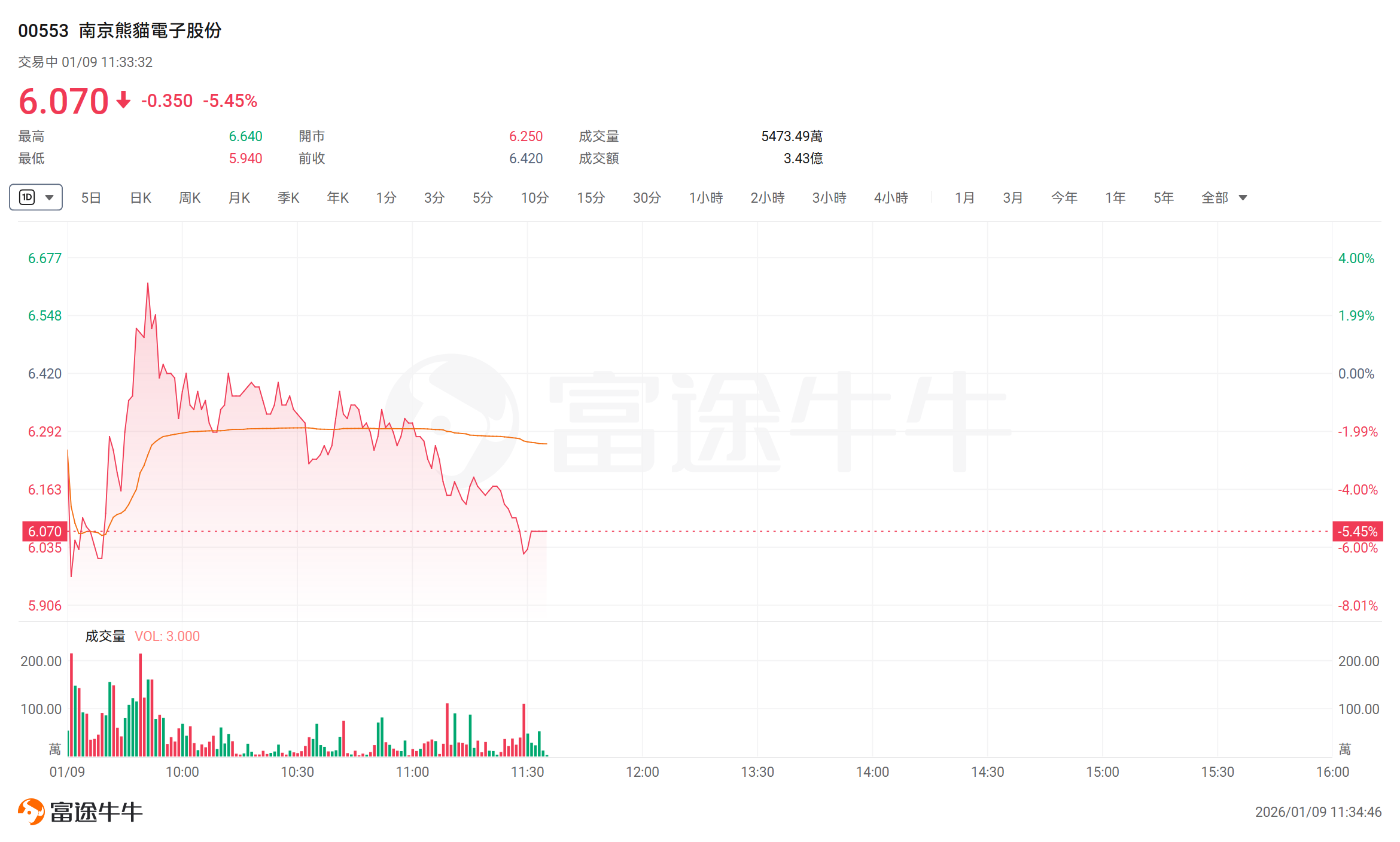 港股异动 | 南京熊猫电子股份(00553)盘中跌超7% 目前没有与高速率脑机交互技术研发项目相关的成熟产品