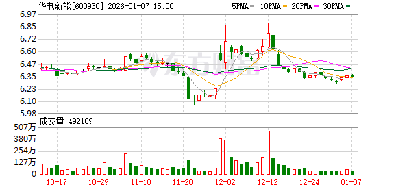 华电新能1月6日获融资买入3943.94万元,融资余额6.34亿元