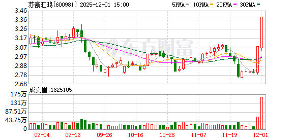 近期股价表现与交易数据 - 苏豪汇鸿股价于盘中涨停,已连续收获3个涨停板,截至当日9:32,股价报3.73元 [2] - 连续涨停期间,该股累计上涨33.21%,累计换手率为12.29% [2] - 当日换手率为2.23%,成交量5002.36万股,成交金额1.83亿元,涨停板封单金额为1.20亿元 [2] 资金流向与龙虎榜信息 - 龙虎榜数据显示,该股因连续三个交易日内涨幅偏离值累计达20%、日涨幅偏离值达7%上榜 [2] - 买卖居前营业部中,沪股通累计净买入482.85万元,营业部席位合计净买入3045.07万元 [2] - 根据近期表现表格,在最近两个涨停日(2025年12月1日和11月28日),主力资金分别净流入6119.95万元和7495.11万元 [2] 公司基本信息与市值 - 江苏苏豪汇鸿集团股份有限公司成立于1992年10月13日,注册资本为224243.3192万人民币 [2] - 公司最新A股总市值达到83.64亿元 [2]