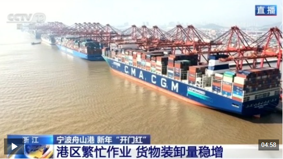 港区繁忙作业 货物装卸量稳增 这艘全球最大的集装箱轮,计划在这里停靠45小时并完成1.6万标准箱的装卸。港口业务部门数据显示,目前梅山港区有12艘集装箱 船同步作业,今天全天集装箱装卸量预计超4万标准箱。 2026年开年不到一周,宁波舟山港已累计装卸船舶超750艘次,完成集装箱吞吐量82.6万标准箱,同比增长超10%;2025年全年集装箱 吞吐量更是突破4300万标准箱,稳居全球前三。 智慧科技全覆盖 作业效率大提升 央视网消息:宁波舟山港是我国重要的集装箱远洋干线港、国内最大的铁矿石和原油转运基地。2025年,这里货物吞吐量首破14亿 吨。 这么大的作业规模却井然有序,核心秘诀就是一套覆盖全程的智慧化系统。港区里穿梭的智能集卡能和有人驾驶集卡混行作业、互不 干扰。 智能集卡精准停靠、货物高效装卸,全靠宁波舟山港自主研发的"双芯智慧大脑"。 双通道贯通 硬核基建再升级 两条30万吨级航道如"海上主动脉",每年节约运输成本超2.3亿元。每一个集装箱的流转、每一次吊装作业的实施,都见证着中国与 世界越来越紧密的联系。 2025年12月26日,宁波舟山港核心港区第二条30万吨级深水主通道条帚门航道正式进入实质性运行 ...
