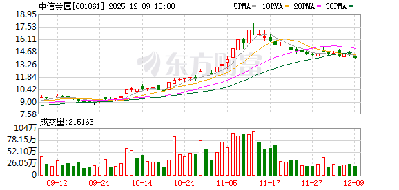 中信金属(601061)披露2025年中期利润分配预案,12月18日股价下跌0.07%