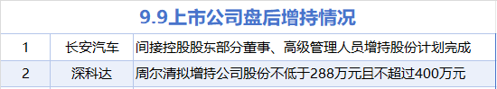 9月9日增减持汇总:长安汽车等2股增持 西部黄金等17股减持(表)