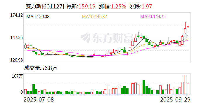 以下文章来源于e公司 ,作者证券时报 康殷 e公司 . e公司,证券时报旗下专注上市公司新媒体产品,立志打造A股上市公司资讯第一平台。提供7x24小时上市公司标准化快讯,针对可能影响上市公司股价的 主题概念、行业事件及时采访二次解读,从投资者需求出发,直播上市公司有价值的活动、会议。 赛力斯(601127)拟年中分红。 9月29日晚间,赛力斯披露2025年半年度利润分配预案,为进一步提高分红水平、增加分红频次、切实回报广大投资者,增强投资者获得感,公司结合经营发 展实际、盈利能力、财务状况及可持续发展需要,拟以实施权益分派股权登记日登记的A股总股本为基数,向全体A股股东每10股派送现金3.1元(含税)。 截至2025年6月30日,公司总股本16.33亿股,以此计算合计拟派发现金红利5.06亿元(含税),占公司2025年上半年归属于上市公司股东的净利润的 17.22%。本次利润分配预案尚需提交2025年第二次临时股东大会审议。 赛力斯表示,2025年上半年,公司锚定智能电动汽车主航道,不断丰富产品布局,问界M9和问界M8分别成为50万元级和40万元级市场销量冠军,高端智能电 动汽车销量的显著增长,带动了公司利润 ...
