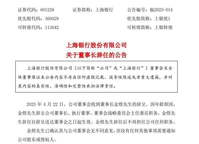 上海银行“换帅”!董事长金煜因年龄原因辞任,顾建忠拟接棒