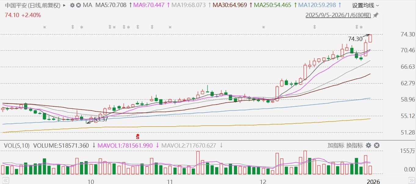 中国平安新年2日累涨近9%,股价创逾5年新高