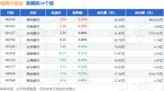 渝农商行杭州银行齐鲁银行领跌银行板块