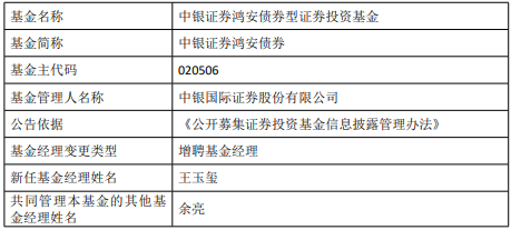 中银证券鸿安债券增聘王玉玺