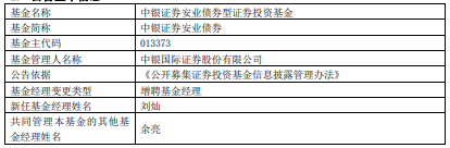 中银证券安业债券与中银证券鸿瑞债券增聘刘灿