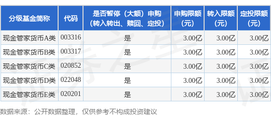 公告速递:中银证券现金管家货币基金调整 大额申购(含转换转入和定期定额投资)限额
