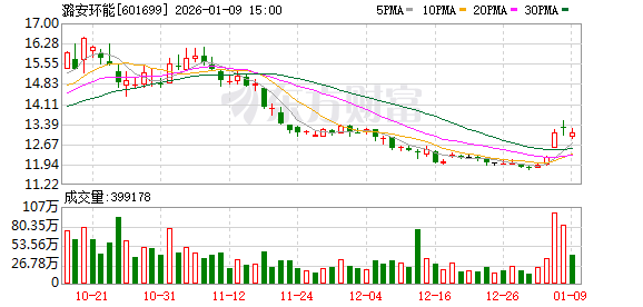 1月8日,潞安环能盘中上涨2.14%,截至10:30,报13.37元/股,成交5.12亿元,换手率1.30%,总市值 399.95亿元。 资金流向方面,主力资金净流入2818.69万元,特大单买入5866.82万元,占比11.47%,卖出4763.90万 元,占比9.31%;大单买入1.46亿元,占比28.51%,卖出1.29亿元,占比25.16%。 潞安环能今年以来股价涨13.31%,近5个交易日涨12.83%,近20日涨6.87%,近60日跌13.18%。 资料显示,山西潞安环保能源开发股份有限公司位于山西省长治市襄垣县侯堡镇,成立日期2001年7月 19日,上市日期2006年9月22日,公司主营业务涉及原煤开采、煤炭洗选、煤焦冶炼,开采煤层的主要煤 种为瘦煤、贫瘦煤、贫煤等。主营业务收入构成为:煤炭92.66%,焦炭5.53%,其他1.81%。 潞安环能所属申万行业为:煤炭-煤炭开采-焦煤。所属概念板块包括:山西国资、破净股、动力煤、煤 化工、融资融券等。 截至11月30日,潞安环能股东户数7.90万,较上期增加0.00%;人均流通股37865股,较上期增加 0.00%。2025年1月-9月,潞安环能实 ...