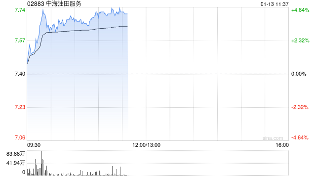 石油股午前普遍活跃 中海油服涨超4%中海油涨超2%