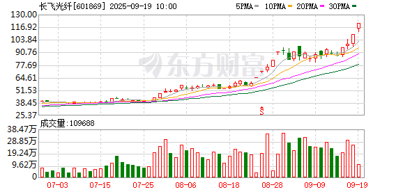 长飞光纤光缆涨超8%破顶 市场热捧空芯光纤 公司称相关业务尚未对财务数据产生明显影响