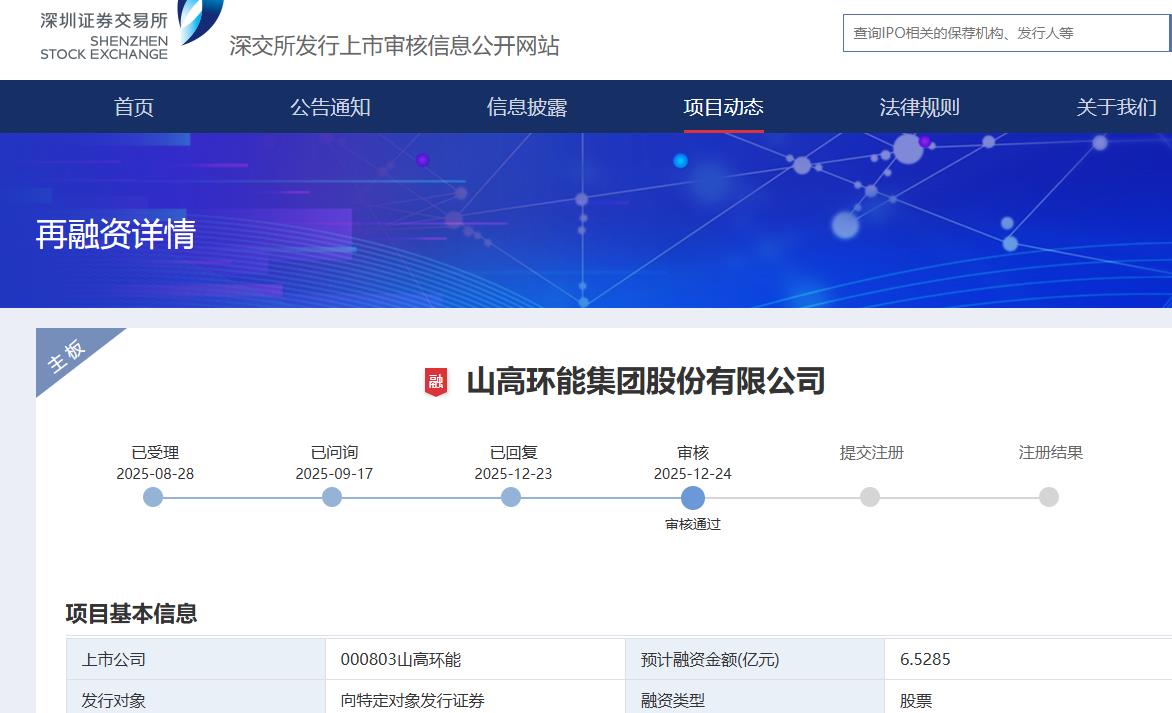 山高环能不超6.53亿元定增获深交所通过 中国银河建功