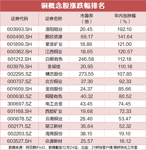 记者丨江佩佩 见习编辑高雅宁 12月24日午后, LME三个月期铜创下每吨12159美元的历史新高,年内累计上涨超37%,这一关键工业金属有望创下自2009年超15年来最大年 度涨幅。 摩根士丹利报告预测,2025年全球数据中心铜消费量约为50万吨,占全球铜总需求的1.5%;2026年这一数据将增至74万吨,为全球铜需求增 长贡献0.6个百分点。到2027年,数据中心铜消费量有望达到100万吨(占总需求2.8%),2028年进一步增至130万吨(占比3.3%),复合年增长率 达40%。 据央视财经,近期,铜价上涨受到多重因素影响。其中,市场普遍预测特朗普政府明年或对铜加征关税,进一步加剧了对铜供应的担忧。分析 师称,为规避关税, 近期出现包括铜在内大量金属运往美国的情况,全球铜库存可能很快降至危急的低位水平。 英大期货指出, 地缘政治风险对铜价或有所提振 。美联储威廉姆斯讲话进一步强化了市场对美联储短期暂停降息的预期。日前,中国铜冶炼 厂代表与智利矿业巨头安托法加斯塔(Antofagasta)敲定2026年铜精矿长单加工费为零, 凸显矿端供应紧张格局 ,叠加美国持续虹吸全球电解 铜,增加非美地区铜供应紧张担忧 ...