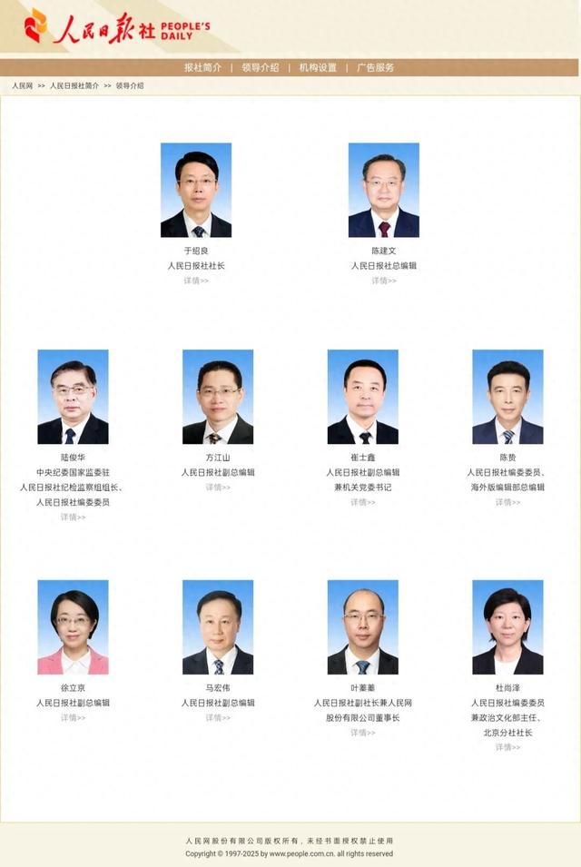 人民网高层人事变动 - 人民网党委书记、董事长、总裁叶蓁蓁已任人民日报社副社长,并继续兼任人民网股份有限公司董事长 [1] - 人民网新增两名副总编辑,包括1984年6月出生的陈星星,其为80后,拥有硕士研究生学历,任副总编辑兼策划联动中心主任 [13][15] - 人民网聘任孟宇红女士为公司副总编辑,孟宇红女士拥有大学本科学历,曾担任环球时报副总编辑等职务 [16][18] - 杨义先生不再担任人民网非独立董事及副总编辑,其已履新人民日报社江西分社社长 [22] 其他央媒领导履新 - 张雷任中新社总编辑,其此前担任中新社副总编辑,拥有大学本科学历和文学硕士学位 [7][9] - 董宽任工人日报社党委书记、社长、总编辑,工人日报社由中华全国总工会主管主办,是中央主要新闻单位之一 [24] - 宁启文已兼任农民日报社党委书记、社长,其策划主笔的“中国三农发布”新媒体平台粉丝量突破3000万,评论播放总量超10亿次 [26] - 新疆日报社总编辑石锋已履新新华社新媒体中心总编辑,石锋为博士,高级记者,其作品多次荣获中国新闻奖 [29] - 曾锐担任中国青年报社党委副书记、社长,中国青年报是中国共产主义青年团中央委员会机关报,在全国设有33个记者站 [31]
