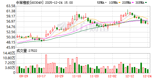 公司股价与交易表现 - 12月19日,公司股价下跌3.23%,成交额为4.28亿元 [1] - 当日融资买入额为4892.16万元,融资偿还额为1894.22万元,融资净买入额为2997.94万元 [1] - 截至12月19日,公司融资融券余额合计为2.40亿元,其中融资余额为2.40亿元,占流通市值的4.87% [1] - 融券方面,12月19日无融券偿还与卖出,融券余量为200.00股,融券余额为1.12万元 [1] 公司基本概况 - 公司全称为中策橡胶集团股份有限公司,位于浙江省杭州市钱塘区1号大街1号 [1] - 公司成立于1992年6月12日,于2025年6月5日上市 [1] - 公司主营业务涉及轮胎、橡胶制品的加工与制造 [1] 公司股东与股权结构 - 截至2025年9月30日,公司股东户数为3.83万户,较上一期减少46.47% [1] - 截至同期,人均流通股为2217股,较上一期增加86.82% [1] - 截至2025年9月30日,兴全趋势投资混合(LOF)(163402)为公司第七大流通股东,持股85.62万股,为新进股东 [2] 公司财务业绩 - 2025年1月至9月,公司实现营业收入336.83亿元,同比增长14.98% [1] - 同期,公司实现归母净利润35.13亿元,同比增长9.30% [1] 公司分红情况 - 公司自A股上市后累计派发现金红利11.37亿元 [2]