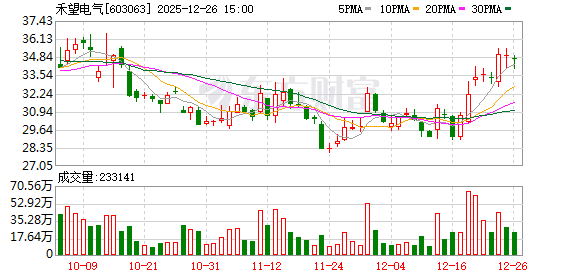 禾望电气今年以来股价涨72.73%,近5个交易日涨2.76%,近20日涨14.81%,近60日跌0.46%。 今年以来禾望电气已经7次登上龙虎榜,最近一次登上龙虎榜为8月12日,当日龙虎榜净买入-2.74亿 元;买入总计4.85亿元 ,占总成交额比13.04%;卖出总计7.58亿元 ,占总成交额比20.41%。 12月26日,禾望电气盘中下跌2.00%,截至11:18,报34.27元/股,成交3.99亿元,换手率2.52%,总市值 156.86亿元。 资金流向方面,主力资金净流出385.19万元,特大单买入3753.85万元,占比9.40%,卖出3443.66万元, 占比8.62%;大单买入8677.56万元,占比21.73%,卖出9372.94万元,占比23.47%。 截至12月20日,禾望电气股东户数5.60万,较上期减少15.15%;人均流通股8173股,较上期增加 17.86%。2025年1月-9月,禾望电气实现营业收入27.78亿元,同比增长20.19%;归母净利润3.34亿元, 同比增长31.99%。 分红方面,禾望电气A股上市后累计派现2.99亿元。近三年,累计派现1.70亿元。 机构持仓方面, ...