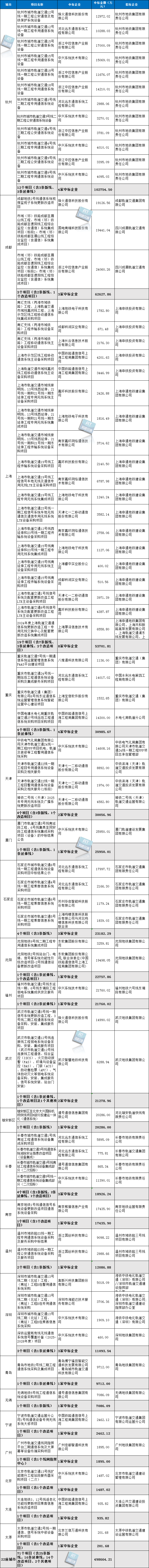 50亿!2025年城轨通信系统中标统计