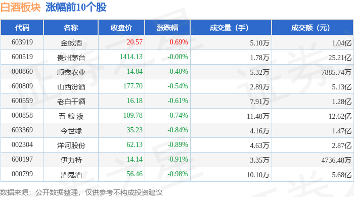 白酒板块12月19日跌0.66%,*ST岩石领跌,主力资金净流出5.64亿元