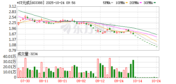 (文章来源:每日经济新闻) 每经AI快讯,10月24日,*ST元成跌停走出10连板,10天累计跌幅达39.39%。 ...