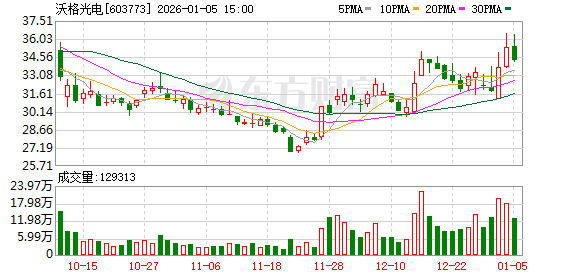 1月6日,沃格光电涨5.22%,截至发稿,报36.11元/股,成交3.31亿元,换手率4.27%,总市值81.12亿 元。 资料显示,江西沃格光电集团股份有限公司位于江西省新余高新技术产业开发区西城大道沃格工业园, 成立日期2009年12月14日,上市日期2018年4月17日,公司主营业务涉及FPD光电玻璃精加工业务。主 营业务收入构成为:光电显示器件51.83%,光电玻璃精加工29.63%,其他18.44%,其他(补充)0.10%。 截至发稿,尤国梁累计任职时间6年77天,现任基金资产总规模42.62亿元,任职期间最佳基金回报 231.75%, 任职期间最差基金回报-15.93%。 从基金十大重仓股角度 数据显示,长城基金旗下1只基金重仓沃格光电。长城久嘉创新成长混合A(004666)三季度持有股数 550万股,与上期相比持股数量不变,占基金净值比例为5.8%,位居第五大重仓股。根据测算,今日浮 盈赚取约984.5万元。 风险提示:市场有风险,投资需谨慎。本文为AI大模型自动发布,任何在本文出现的信息(包括但不 限于个股、评论、预测、图表、指标、理论、任何形式的表述等)均只作为参考,不构成个人投资建 议。 ...