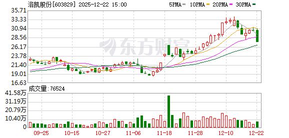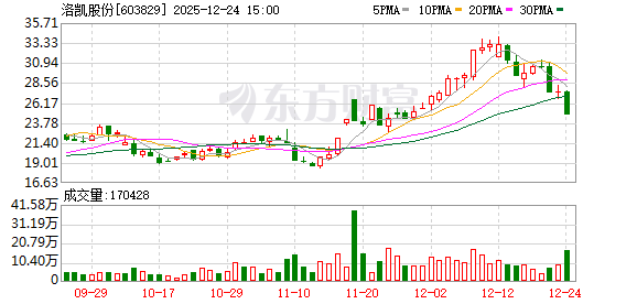 洛凯股份12月24日公告,公司股票连续三个交易日收盘价格跌幅偏离值累计超过20%,根据《上海证券 交易所交易规则》的有关规定,属于股票交易异常波动情形。经公司自查,公司近期日常经营情况及外 部环境未发生重大变化。公司所处的市场环境、行业政策没有发生重大调整,生产成本和销售等情况没 有出现大幅波动,内部生产经营秩序正常。截至本公告披露日,公司、控股股东及实际控制人不存在影 响公司股票交易价格异常波动的重大事项,不存在应披露而未披露的重大信息。 ...
