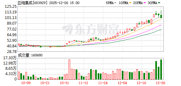 另外,公司于2025年9月2日披露了股东EVER CREATIVE减持股份计划公告。减持期间:2025年9月23日~2025年12月22日,EVER CREATIVE于2025年12月 11日减持41.4万股,敬请广大投资者注意股东减持风险。 格隆汇12月25日|昨日创新高的亚翔集成(603929.SH)跌超4%,该股年内累计涨幅超3倍,现报102.8元,总市值219亿元。 消息上,亚翔集成公布股票交易异常波动公告,当前公司股票价格短期涨幅较大,存在市场情绪过热、非理性炒作风险,敬请广大投资者注意二级市场交易 风险,理性决策,审慎投资。 ...