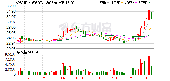 文章核心观点 - 众望布艺(605003)近期股价表现强势,连续两个交易日涨停,累计上涨21% [5] - 股价上涨主要受家纺、全球化/外销、未来工厂等多个市场热点概念共同驱动 [3][4] - 公司基本面显示其在中高档装饰面料领域拥有完整产业链和核心技术,且境外市场收入占主导地位 [1][3] 公司业务与基本面 - 公司主营业务为中高档装饰面料及制品的研发、设计、生产与销售,产品应用于沙发、户外家具、房车家具及宠物用品 [1] - 公司已建立从纺纱、织造、后整理到沙发套的完整产业链,工艺与质量指标达国际先进水平 [3] - 公司是中国布艺行业中最具核心竞争力的企业之一 [2] - 公司获评浙江省“未来工厂”,拥有行业领先的设计研发团队,产品色牢度、耐磨性等关键技术指标居行业前列 [4] - 截至分析时点,公司总股本为1.10亿股,流通股为1.10亿股,每股净资产为13.07元,动态市盈率(PE)为56.0 [1] 市场表现与近期驱动因素 - 近期股价连续两个交易日涨停(2天2板),累计上涨21% [5] - 当日收盘价为35.55元,上涨3.23元,涨幅为9.99%,当日最高价即为涨停价35.55元 [1] - 当日换手率为8.03%,成交总量为88300手,主力资金净流入1106.6万元 [1][5] - 技术指标显示均线呈多头排列,MACD有继续上扬的动力 [5] 核心业务亮点与概念 - **家纺概念**:公司主营装饰面料,在家纺板块活跃的行情带动下迎来上涨 [3] - **全球化与外销概念**:公司境外营收占比约78.64%,深耕美国市场并同步开拓澳大利亚、中东、南非、欧洲等市场,全球化布局明确 [3] - **未来工厂概念**:公司凭借研发与品牌优势获评“未来工厂”,该概念活跃带动股价 [4]