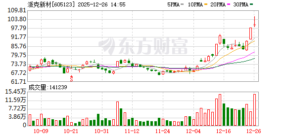 公司股价与交易表现 - 12月23日盘中,公司股价上涨2.13%,报87.43元/股,总市值105.94亿元,成交额1.38亿元,换手率1.32% [1] - 当日资金流向显示主力资金净流出1049.69万元,其中特大单卖出461.39万元(占比3.35%),大单买入2578.91万元(占比18.73%)同时卖出3167.21万元(占比23.00%) [1] - 公司股价今年以来累计上涨64.96%,近期表现强劲,近20日上涨27.92%,近60日上涨25.10%,近5个交易日微涨0.40% [1] 公司业务与财务概况 - 公司主营业务为金属锻件的研发、生产和销售,2025年1-9月实现营业收入26.81亿元,同比增长8.04%,但归母净利润为2.37亿元,同比减少3.84% [1][2] - 主营业务收入构成以电力锻件为主,占比38.84%,其次是航空航天锻件(24.63%)和石化锻件(16.15%),其他收入来源包括废料销售(9.69%)及其他类锻件(9.39%)等 [1] - 公司自A股上市后累计派现4.60亿元,近三年累计派现3.73亿元 [3] 行业归属与股东情况 - 公司所属申万行业为国防军工-航空装备Ⅱ-航空装备Ⅲ,涉及的概念板块包括军民融合、大飞机、核聚变、燃气轮机、商业航天(航天航空)等 [2] - 截至2025年9月30日,公司股东户数为1.49万户,较上期增加0.58%,人均流通股8150股,较上期减少0.58% [2] - 同期十大流通股东中,国投瑞银国家安全混合A(001838)为第四大股东,持股223.98万股,较上期增加13.08万股;香港中央结算有限公司为第五大股东,持股183.88万股,较上期大幅增加97.70万股;富国军工主题混合A(005609)已退出十大流通股东名单 [3] 公司基本信息 - 公司全称为无锡派克新材料科技股份有限公司,位于江苏省无锡市滨湖区,成立于2006年6月29日,于2020年8月25日上市 [1]