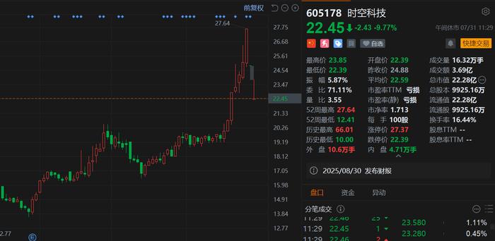 时空科技龙虎榜数据(7月30日)