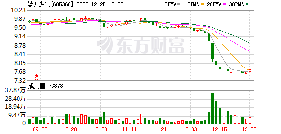 蓝天燃气:控股股东3000万股被轮候冻结 累计轮候冻结占比达68.09%