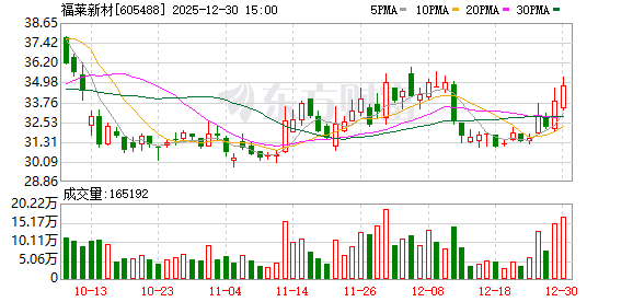 截至2025年12月31日收盘,福莱新材(605488)报收于34.35元,下跌1.15%,换手率3.09%,成交量8.55万 手,成交额2.95亿元。 福莱新材关于召开2026年第一次临时股东会的通知 浙江福莱新材料股份有限公司将于2026年1月15日召开2026年第一次临时股东会,会议采取现场与网络 投票相结合方式,网络投票通过上海证券交易所系统进行。股权登记日为2026年1月12日,登记时间为 2026年1月13日。会议审议包括申请综合授信额度、开展票据池业务、新增担保额度、外汇衍生品交 易、闲置资金及募集资金现金管理、变更注册资本及修订公司章程等七项议案。其中议案3和议案7为特 别决议议案。 福莱新材关于部分闲置募集资金购买理财产品到期赎回的公告 当日关注点 交易信息汇总资金流向 12月31日主力资金净流出2429.05万元,占总成交额8.24%;游资资金净流出818.91万元,占总成交额 2.78%;散户资金净流入3247.96万元,占总成交额11.02%。 公司公告汇总福莱新材关于回购注销部分限制性股票通知债权人的补充公告 浙江福莱新材料股份有限公司因实施限制性股票回购注销,若在2024年年度权益 ...