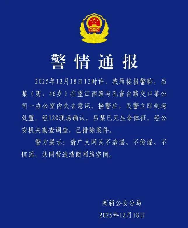 12月18日,据新黄河报道,合肥高新公安分局发布警情通报: 2025年12月18日13时许,我局接报警称,吕某(男,46岁)在望江西路与孔雀台路交口某公司一办公室内失去意识。接警后, 民警立即到场处置。经120现场确认,吕某已无生命体征。经公安机关勘查调查,已排除案件。 警方提示:请广大网民不造谣、不传谣、不信谣,共同营造清朗网络空间。 12月18日晚,科大国盾量子技术股份有限公司(以下简称"国盾量子")发布公告披露,公司董事长吕品先生不幸逝世。 另据智通财经消息,记者从知情人士处获悉,国盾量子董事长吕品18日意外去世。 2024年3月,中国电信通过旗下中电信量子集团斥资17.75亿元入主国盾量子。 国盾量子2025年5月30日召开第四届董事会第十三次会议,选举吕品担任公司第四届董事会董事长。 公开资料显示,吕品,1979年7月生,硕士研究生学历。历任中国电信集团有限公司市场部副总经理,中国电信股份有限公 司市场部副总经理,中国电信股份有限公司安徽分公司副总经理、党委委员,中国电信集团有限公司安徽分公司副总经 理;现任中电信量子信息科技集团有限公司董事长、党委书记,中电信量子科技有限公司董事长。 公告称,吕品 ...