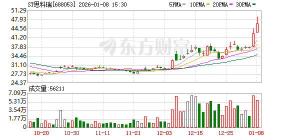 ST思科瑞跌5.49% 2022上市募13.88亿中国银河保荐