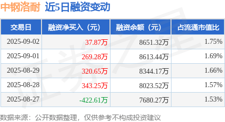 中钢洛耐:9月2日融资净买入37.87万元,连续3日累计净买入627.8万元