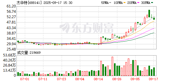 股票交易数据 - 9月17日大宗交易成交量5.10万股 成交金额214.20万元 成交价42.00元 较当日收盘价折价16.13% [2] - 买方为光大证券上海人民北路营业部 卖方为上海证券松江区乐都路营业部 [2] - 当日收盘价50.08元 下跌3.26% 日换手率8.32% 成交额11.11亿元 [2] 资金流向 - 当日主力资金净流出1.01亿元 近5日累计净流出1.16亿元 [2] - 近5日股价累计上涨8.28% [2] - 最新融资余额7.66亿元 近5日增加1.17亿元 增幅达18.07% [3] 公司基本信息 - 公司全称杰华特微电子股份有限公司 成立于2013年03月18日 [3] - 注册资本44688万元人民币 [3]