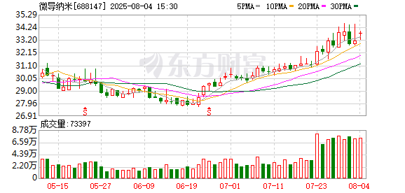 股价表现与交易数据 - 2025年8月5日收盘价34.72元 单日上涨2.78% [1] - 换手率9.96% 成交量10.08万手 成交金额3.44亿元 [1] - 主力资金净流入1016.09万元 占成交额2.95% 其中大单净流入1258.27万元占比3.65% 超大单净流出242.18万元占比0.7% [1] 资金流向结构 - 中单资金净流出1201.05万元 占成交额3.49% [1] - 小单资金净流出2217.14万元 占成交额6.44% [1] 财务业绩表现 - 2025年一季度营业总收入5.10亿元 同比大幅增长198.95% [1] - 归属净利润8410.29万元 同比增长2253.57% [1] - 扣非净利润8131.63万元 同比增长525.17% [1] 财务健康状况 - 流动比率1.521 速动比率0.736 [1] - 资产负债率67.72% [1] 公司基本信息 - 江苏微导纳米科技股份有限公司成立于2015年 总部位于无锡市 [1] - 属于专用设备制造业 法定代表人王磊 [1] - 注册资本45767.8129万人民币 实缴资本36000万人民币 [1] 企业运营与资产 - 对外投资2家企业 参与招投标项目47次 [2] - 拥有商标信息89条 专利信息524条 [2] - 获得行政许可68个 [2]