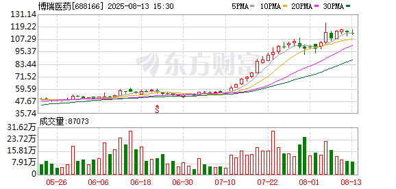股价表现 - 公司股价报112.79元,较前一交易日下跌0.67% [1] - 盘中最高触及116.19元,最低下探111.32元 [1] - 成交金额达9.87亿元 [1] 大宗交易 - 8月13日发生一笔大宗交易,成交量7万股,成交金额710.64万元 [1] - 成交价101.52元,较当日收盘价折价9.99% [1] - 买方为中信证券总部,卖方为国投证券江苏分公司 [1] 资金流向 - 当日主力资金净流出1.40亿元 [1] - 近五日主力资金合计净流入3.33亿元 [1] 公司业务 - 公司属于化学制药板块,专注于高端仿制药和创新药的研发生产 [1] - 业务涵盖原料药和制剂产品的研发、生产及销售 [1]