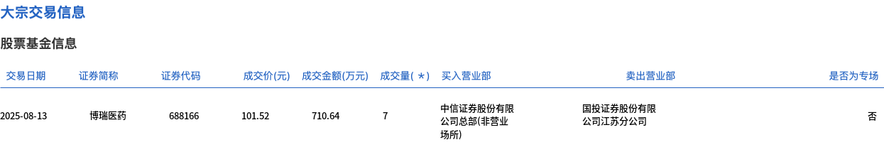 博瑞医药今日大宗交易折价成交7万股,成交额710.64万元