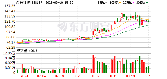 炬光科技9月8日现2笔大宗交易 总成交金额646.46万元 其中机构买入346.26万元 溢价率为-2.00%