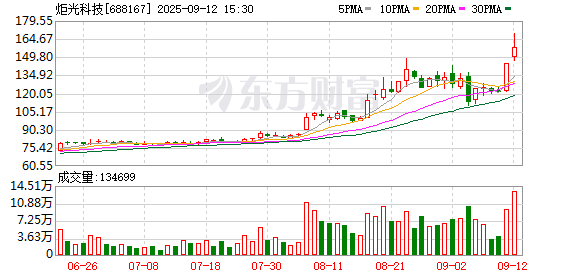 炬光科技今日大宗交易成交54.59万股,成交额7411.16万元