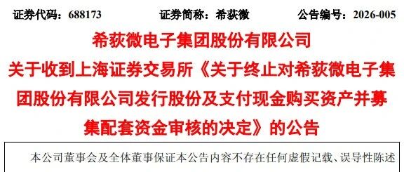 收购方案重大变更 - 希荻微终止原发行股份及支付现金购买资产并募集配套资金事项,转而推出全新现金收购方案[1] - 新方案拟以3.1亿元现金全额收购深圳市诚芯微科技股份有限公司100%股份[1] - 公司已收到上海证券交易所终止相关审核的决定,历时一年多的重组事项正式转向现金收购[1] 收购方案调整原因与细节 - 调整核心原因为维护公司及投资者利益、提高交易效率、降低交易成本,并综合考量公司发展规划与资本市场环境[3] - 2025年12月31日,公司与交易对方签署《股份转让协议》,约定以31,000万元现金对价收购诚芯微100%股份[5] - 交易完成后,诚芯微将成为希荻微全资子公司,调整后的现金收购方案不再构成重大资产重组及关联交易[5] 标的公司业绩承诺 - 交易对方作出业绩承诺,诚芯微需在2025年度、2026年度、2027年度分别实现净利润不低于2,200万元、2,500万元和2,800万元[6] - 三年累积承诺净利润总额不低于7,500万元[6]