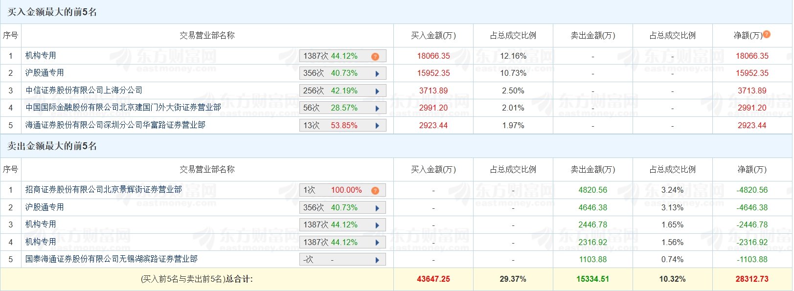 龙虎榜丨机构今日抛售这17股,买入景旺电子2.5亿元